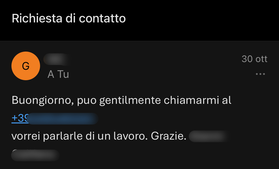 [DISCLAIMER]: i nomi e i dettagli che avrebbero potuto identificare qualcuno sono stati oscurati. Casomai dovessi rivederti in qualcosa, prendila con filosofia, ognuno fa il suo mestiere: probabilmente anch’io sono finito nella lista dei peggiori messaggi di qualcuno di cui sono cliente.